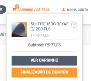 6. No canto superior direito você vai encontrar o ícone do carrinho. Clique no local para conferir a sua compra!