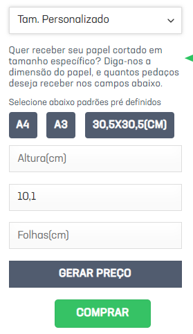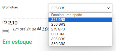 2. Após escolher o papel, vamos seguir para a escolha da gramatura.