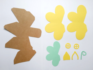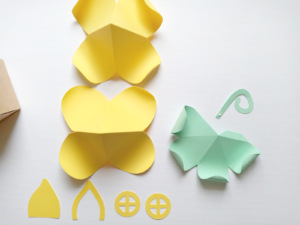 Já para decorar, escolhi o papel Canário da linha F-card com 180g. Acho o tom de amarelo perfeito para trazer leveza e alegria ao projeto. O papel Tahiti 180g completa a decoração com este tom verde suave lindo.
