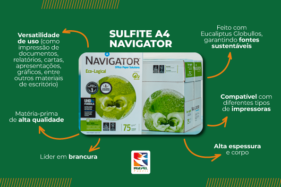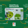 Considerado o melhor SULFITE A4 do mundo, o A4 Navigator possui os principais certificados mundiais de Sustentabilidade (ISO 1400, Selo FSC, Selo Cerflor), de Produtividade (ISO 9001). Possui excelente desempenho em todas as impressoras Jato de Tinta, Laser e Digital, pois é fabricado com a Celulose Globullus, que deixa o papel mais firme e mais encorpado.