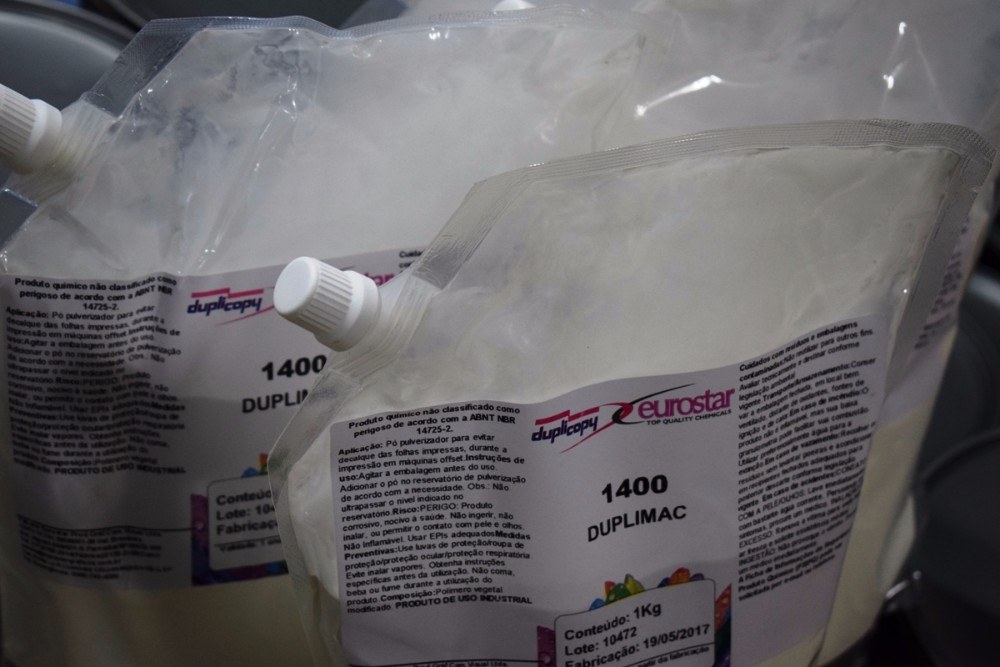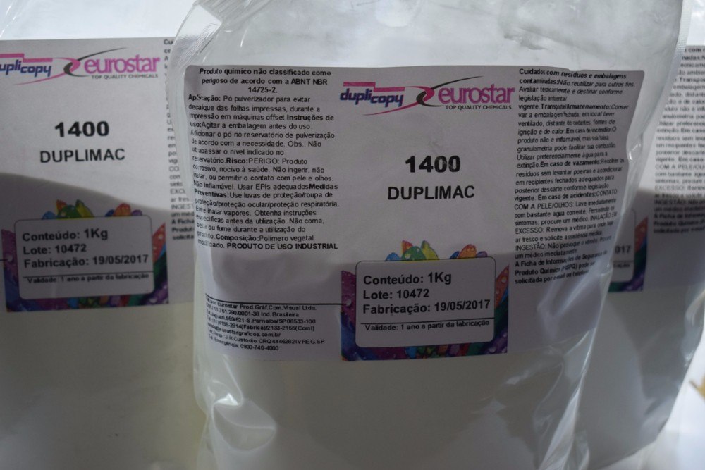 Característica:Pó anti maculador, também conhecido como Pó Anti decalque, é indispensável no processo de impressão off set, afim de acelerar a secagem da tinta no papel.