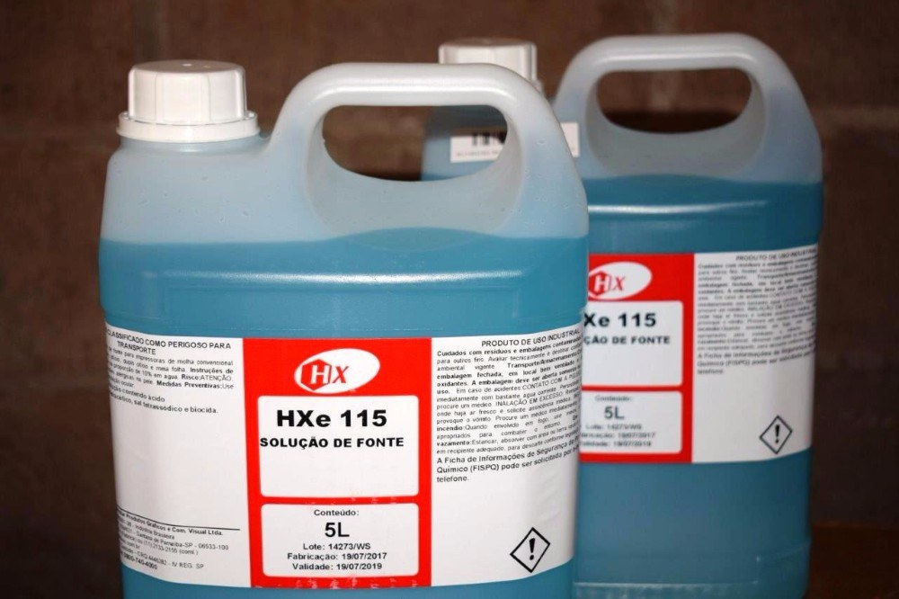 Solução de fonte Hexa HX115: Produto concetrado, mistura-se 5 litros de água em 1 litro de solução. Indicada para máquinas com molha convencional.