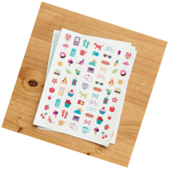 Por exemplo: Adesivo escolar (etiquetas, figuras de cadernos, etc..), normalmente é o mais simples, possui um frontal em sulfite ou couche brilho, onde este pode ser impressora em sistema off set, impressora laser ou digital, e aquele para impressão jato de tinta ou off set. A camada de cola é suficiente para mantê-la firme na superfície aplicada.