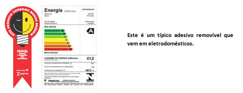 Existe também o adesivo removível, que pode ser colado e depois ser retirado sem deixar resíduos de cola. Mas atenção! Este adesivo tem prazo de validade e após esta data, passa a ser um adesivo permanente, com grande dificuldade de remoção.